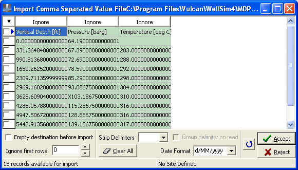 Select a discharge simulation and click Graph to open a MultipleGraph. If necessary, set up the axes to show Pressure and Temperature down the well: