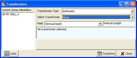 Result field specifies if the result of the transform will be written to an existing field in the worksheet or to a new field. If to a new field, you can select a name for the field from a dropdown list. Note that the result of the transform is deleted when you finally exit the MultiGraph window.